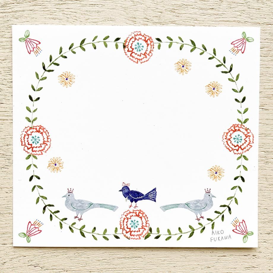 かわいいお花のフレームがおしゃれな、布川愛子デザインのブロックメモ。
