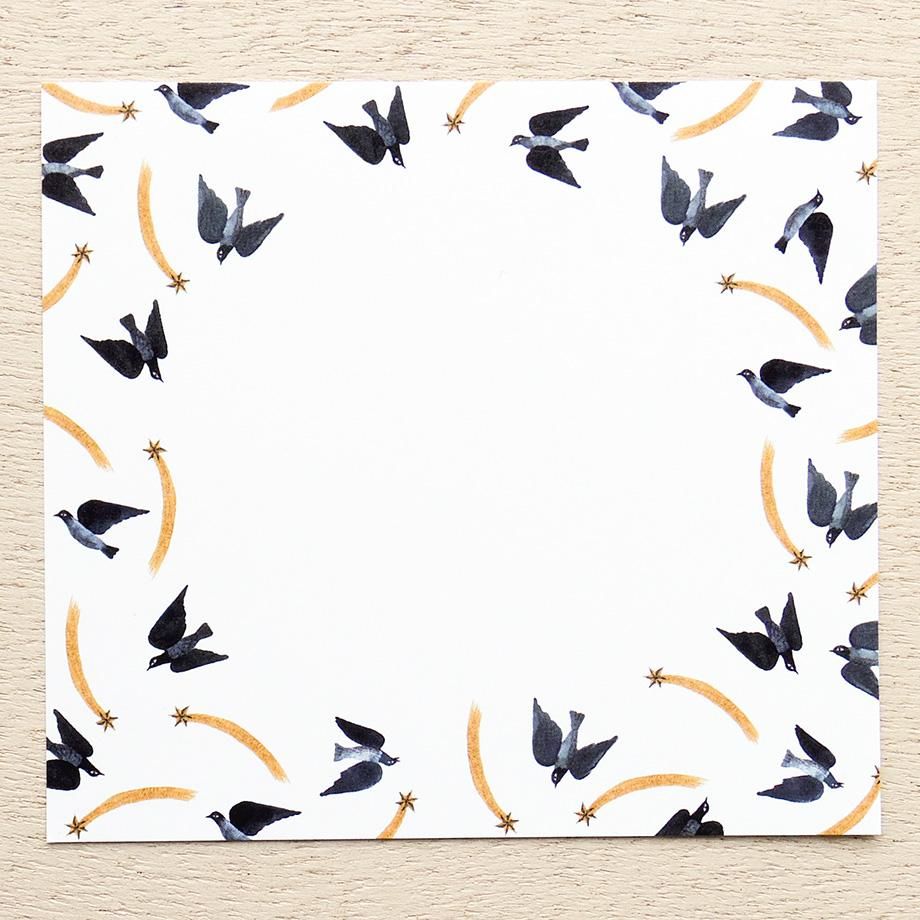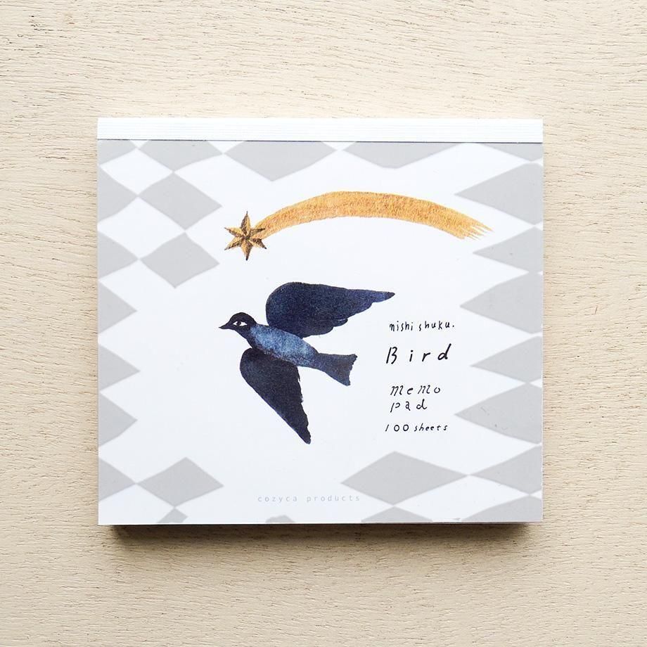 流れ星に願いを込めて。鳥と星が描かれた、西淑のおしゃれなブロックメモ。