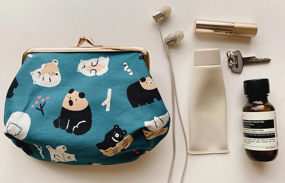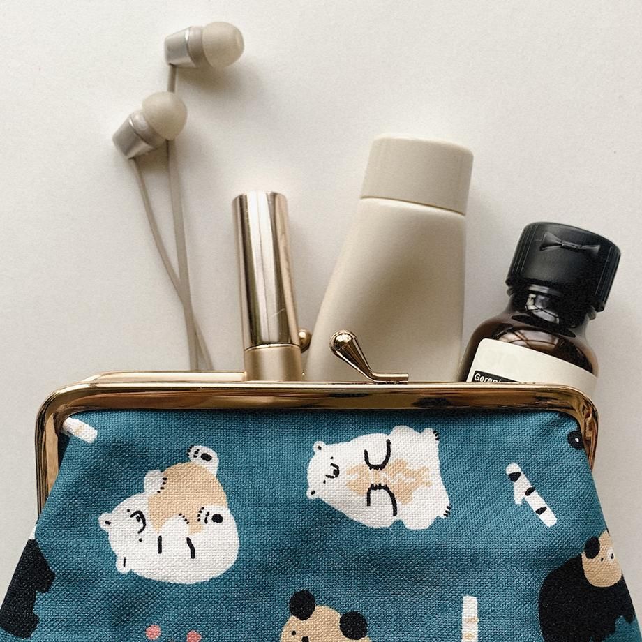 つぶらな瞳がかわいい、高旗将雄のくまの帆布がま口コスメポーチ。