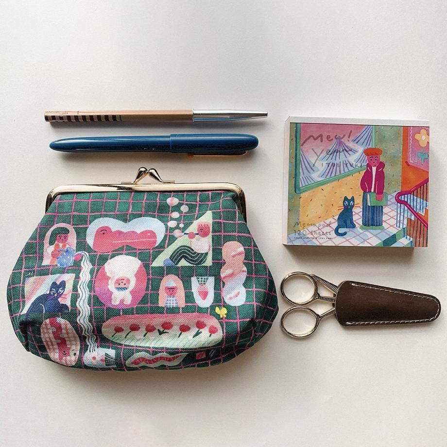 《残りわずか》西淑 帆布がま口コスメポーチ grassland