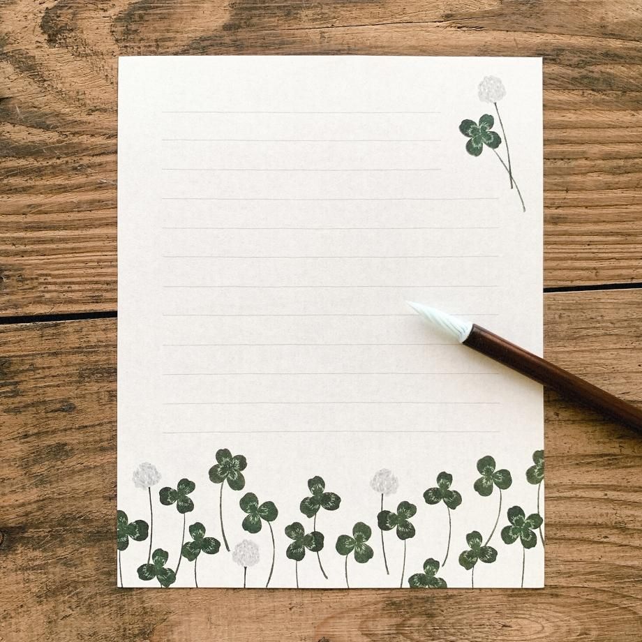 クローバー が描かれた やさしい雰囲気のレターセット。