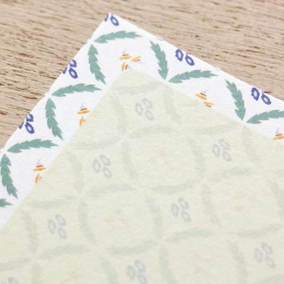 草花の柄がしきつめられた、テキスタイルデザイナー・安原ちひろのかわいい一筆箋。シンプルながら華やかで、ちょっとしたお手紙やお礼を書くのにぴったりです。