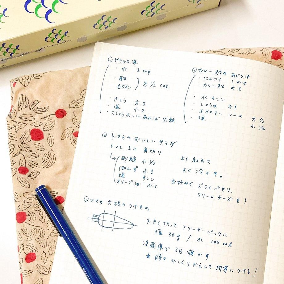 持ち歩きやすいA5サイズで、日記をつけたり、手帳にしたりするのにもおすすめ。表紙はマットな質感で、ページの一枚目にはイラストが印刷されたかわいい中紙入り。ノートの中身は5mm方眼で、目に優しいクリーム色の上質紙を使用しております。