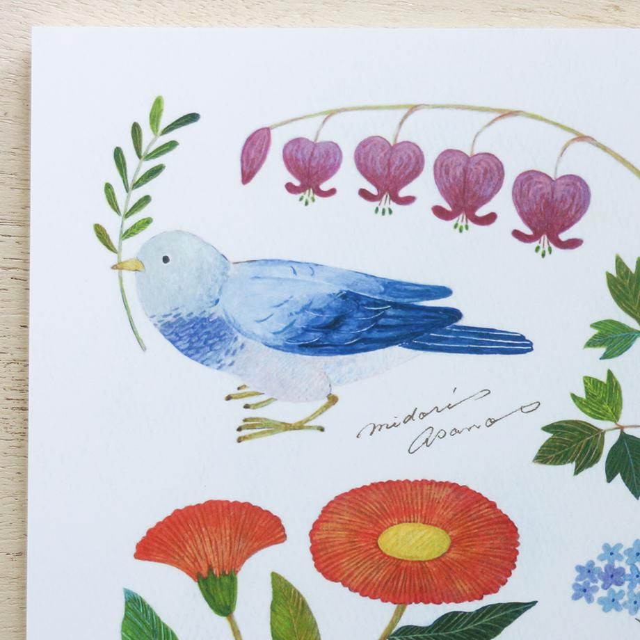 《残りわずか》浅野みどり バースデーカード Bird birthday card blue