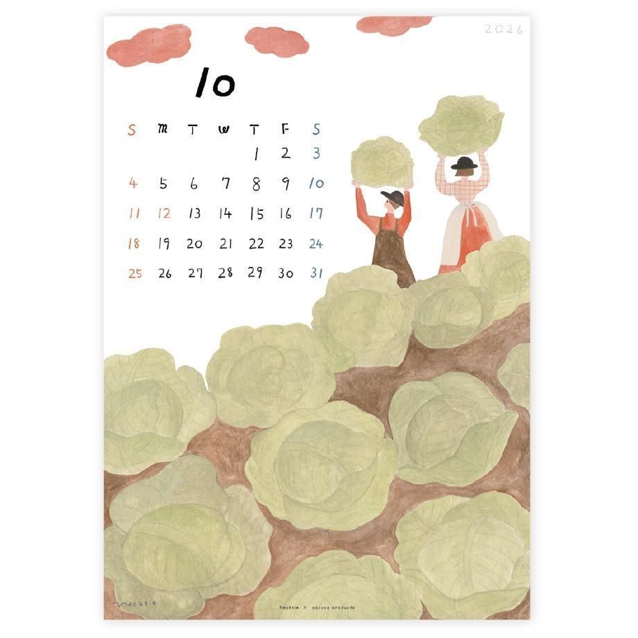 1年の暮らしがかわいく描かれた、イラストレーターユニット・ネクタイの2026年カレンダー。