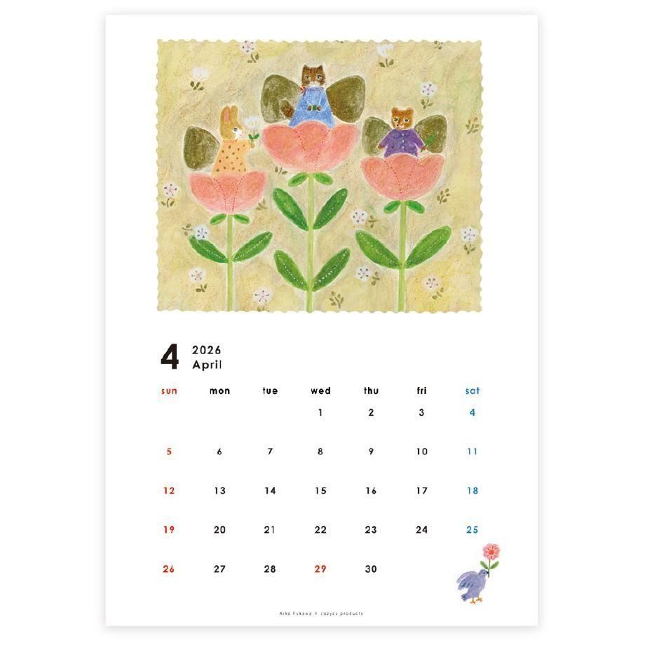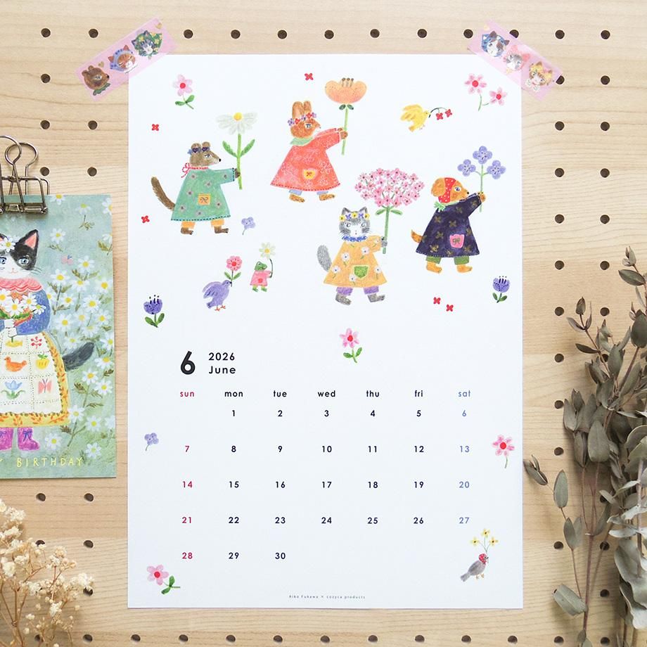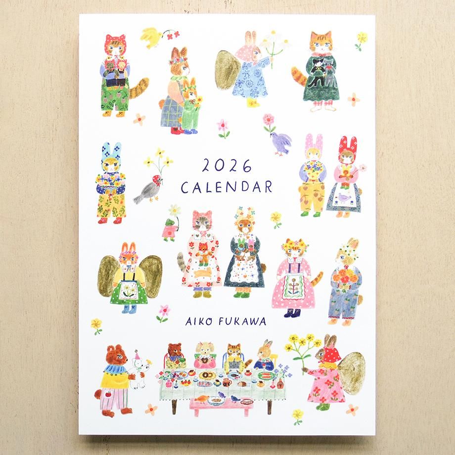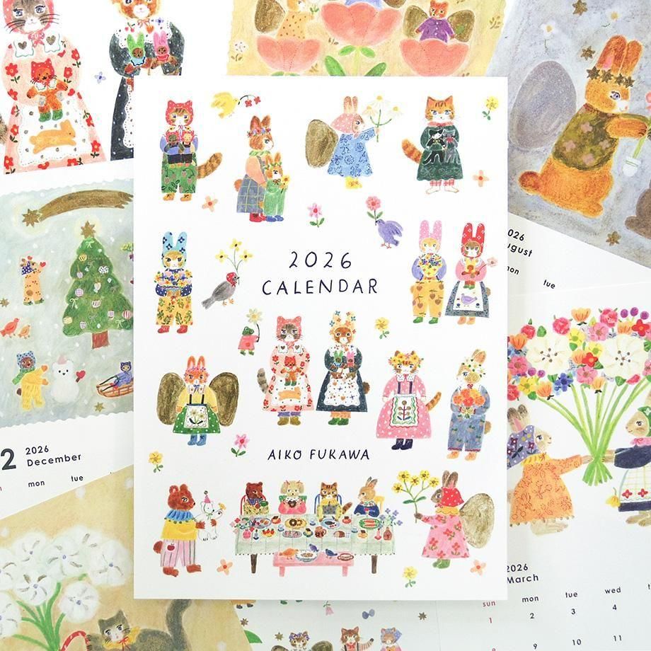 愛らしいどうぶつたちが描かれた、イラストレーター・布川愛子のかわいい2026年 カレンダー。
