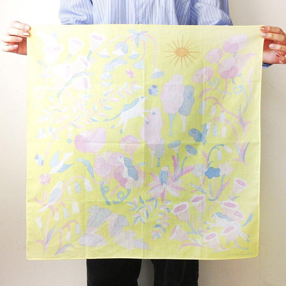 淡いイエローがなんとも美しい、柊有花のおしゃれな大判ハンカチ。