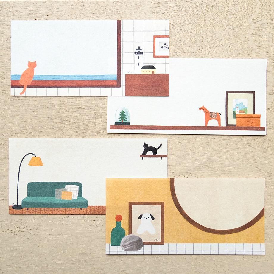 おしゃれなお部屋で過ごす 素敵な時間が描かれた、福岡麻利子の一筆箋。