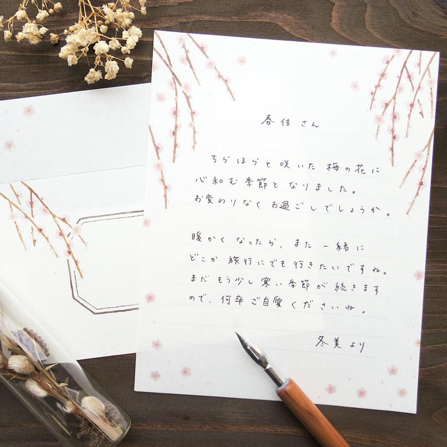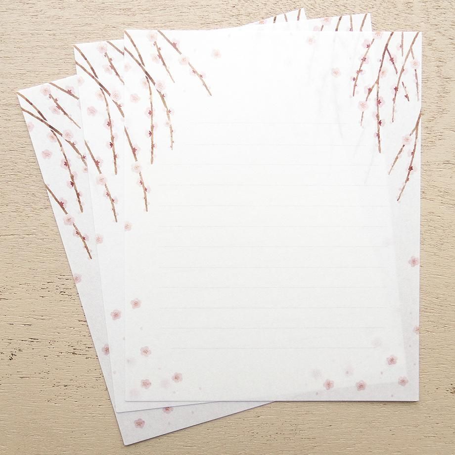 しだれ梅が描かれた やさしい雰囲気のレターセット。